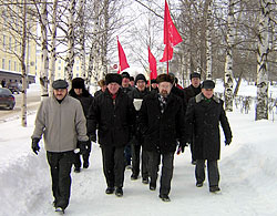 Коммунисты заступились за политзаключенныхК участникам шествия протеста примкнули правозащитник и панкВ минувший понедельник, 21 марта, лидеры и активные сторонники рескомов двух коммунистических партий – КПРФ и РКРП-РПК – провели в Сыктывкаре организованное шествие. На этот раз коммунисты требовали свободы для политзаключенных.