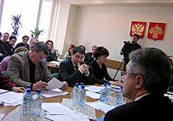 ЭнергорифыНеудачей закончилась попытка депутатов госсовета выступить в роли арбитров в «тарифной войне»![]() Генеральный директор ОАО «АЭК «Комиэнерго» Михаил Смекалов демонстративно покинул внеочередное расширенное заседание Комитета Госсовета РК по социальным вопросам, на котором депутаты сделали неудачную попытку стать арбитрами в противостоянии между энергокомпанией и Службой РК по тарифам по вопросу об уровне энерготарифов в 2005 году. Состоявшееся 7 апреля внеочередное расширенное заседание Комитета Госсовета РК по социальной политике, которое было созвано, по словам председателя комитета Ростислава Гольдштейна, для того, чтобы попытаться «поставить точку» в спорах об уровне энерготарифов и «не будоражить народ», ознаменовалось демаршем двух его участников. Генеральный директор АЭК «Комиэнерго», депутат госсовета Михаил Смекалов и заместитель председателя госсоветовского комитета по законодательству и местному самоуправлению Лев Зайцев демонстративно покинули заседание, заявив, что комитет взялся не за свое дело. А большинство из оставшихся депутатов недвусмысленно высказались в поддержку одной из сторон в «тарифной войне» – Службы РК по тарифам.