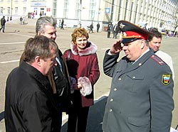 Пасхальные встречиКоммунистов отделили от верующих милицейской цепью![]() У ворот Свято-Стефановского кафедрального собора в Христово Воскресение встретились епископ Питирим и бывшие члены КПСС - мэр Сыктывкара Сергей Катунин и заместитель Главы РК Вера Скоробогатова. Вчера, 1 мая, Федерация профсоюзов РК во главе с ее руководителем Дмитрием Лукашенко вывела людей на Стефановскую площадь Сыктывкара, дабы отметить как полагается праздник Весны и Труда. А заодно - и Пасху. К членам профсоюза и сочувствующим примкнули представители партий <Единая Россия>, <Родина> и члены двух существующих в Коми коммунистических организаций - КПРФ и РКРП-РПК. Коммунисты вышли на свой страх и риск, поскольку постановлением главы администрации столицы республики Сергея Катунина публичные акции на Первомай им были запрещены.