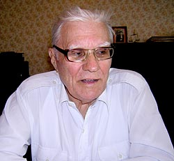 – 10-й класс мы закончить не успели. Но нам все равно выдали аттестаты и в феврале 1943 года призвали в армию. Сначала меня направили в Устюг в пехотное училище, но по зрению забраковали и послали в Вологду – в запасной полк, где я окончил полковую школу младших командиров. В этой полковой школе в качестве помкомвзвода потом несколько выпусков подготовил сам. В августе 44-го года меня направили на 1-й Прибалтийский фронт в 164-ю стрелковую дивизию. Она наступала на Ригу. Я был командиром расчета 82-мм батальонного миномета. Числах в двадцатых сентября у меня расчет выбило: двоих ранило, одного из них тяжело. На марше прямо был обстрел. В расчете осталось всего три человека, и меня назначили в ячейку управления. Это минометная разведка. Выходишь вместе с пехотой на передний край и корректируешь огонь. Этим я занимался до 24 сентября. В этот день нас накрыло. Мы были на хуторе, с чердака корректировали огонь. А по хутору славяне сновали – то один пробежит, то другой шурует, кладовку ищет. Немцы заметили и накрыли из шестиствольного миномета хутор. Как бабахнуло! Я вместе с балками вниз рухнул (смеется). Мне сюда осколок попал (показывает на правую руку), кровь хлещет. Лежим под обломками. Но обстрел прекратился. Нас вытащили. Один погиб, а ранило троих. К счастью, кость у меня не перебило – осколок прямо в нее уперся. Отправили меня в госпиталь, где я пробыл с сентября по март 45 года. Когда поправился, направили в запасной полк. Там формировали маршевые роты и направляли в действующие части. В этом полку меня опять назначили помкомвзвода – мало было людей со средним образованием. Так я на фронт больше и не попал. Конец войны застал в Кенигсберге. Нашу дивизию оттуда перебросили в Германию – в городок на Одере недалеко от Штеттина. – Вы награждены медалью «За отвагу». Вы ее получили за участие в боях вообще или за конкретный боевой эпизод? – У меня наград-то много, конечно. Но из боевых – только эта медаль. Мне ее уже в госпитале вручили. Прислали после ранения вдогонку. А представили меня к награде за конкретный случай. Мы несколько дней держали оборону под городом Ецава. Наступление на Ригу задержалось. Мы перебрались с расчетом за речку. Под обрывом оборудовали позицию. А за минами надо плавать. Никто из моего расчета плавать не умел, послать было некого, и я несколько раз переплывал речку, доставлял боеприпасы. Вот из-под обрыва мы и стреляли. Причем под бомбежкой. Рядом окопались другие расчеты, пехотинцы. Многих там побило. Немцы перешли в контратаку, танки пустили. А мы вели по ним огонь… – Вспоминая войну, некоторые ветераны говорят, что «за Сталина» в атаку не ходили… – Я не могу об этом говорить, потому что сам в атаку не ходил – я минометчик. Но то, что кричали «за Сталина!» – конечно, кричали. В него все свято верили, как в бога. Это сейчас, говоря о Сталине, вспоминают репрессии. А тогда в основном считали, что он верховный главнокомандующий, вождь советского народа. Были, наверное, люди, которые не согласны были с советской властью, с партией. Я лично таких не встречал. У меня окружение в основном было из молодых солдат, и у них никаких сомнений в отношении советской власти, роли партии и Сталина не было. Это была молодежь, которая выросла при советской власти. Вся ее идеология впиталась в нас тогда. Мы были идейно убежденными людьми. – В Прибалтике, Во