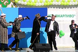 Это уже третий по счету пивной фестиваль, устраиваемый руководством «Сыктывкарпиво». В этом году он совпал с приятным для ОАО событием – присуждением «золотой» медали сорту «Донское казачье» на недавнем московском фестивале. Сыктывкарский пивной праздник проходил на стадионе в Кировском парке. Перед началом мероприятия гостей развлекали звучащими из динамиков хитами, так или иначе связанными с пивной тематикой. Под песни «Губит людей вода», «Нажраться небесного пива…» и пр. собирающаяся на фестиваль публика в ожидании официальной части потягивала продаваемую здесь же по весьма умеренным ценам продукцию «Сыктывкарпиво». Некоторые зрители к открытию фестиваля подготовились заранее, поэтому сразу пускались в пляс. Почетным правом объявить об открытии пивного фестиваля воспользовались генеральный директор ОАО Ирина Май и исполняющий обязанности сыктывкарского мэра Александр Эпштейн. Г-н Эпштейн начал свое приветственное слово так: «Вот если бы 30 лет назад, когда я был студентом, мне бы сказали, что я буду открывать фестиваль пива, то пришлось бы сложить все билеты, в первую очередь – комсомольский…» Исполняющий обязанности градоначальника также напомнил горожанам о «думских нападках» на слабоалкогольные напитки, выразил надежду, что «у нас все пройдет прилично», поблагодарил «Бога за прекрасную погоду, а Ирину Май – за прекрасный праздник» и объявил наконец об открытии фестиваля. В программе, помимо выступлений команды КВН «Дубы-колдуны», нескольких исполнителей эстрадных песен, танцевального ансамбля «Сполохи» и рок-групп «Кеды» и Cannabit, значились всевозможные конкурсы: «Прыгающий официант», «Пивная эстафета», «Перетягивание пивной кеги», «Жадность», «Самый большой живот». Каждый участник конкурса получал как минимум по стаканчику халявного пива, победителю же причиталась целая «полторашка». Фестиваль пива охранялся усиленным нарядом милиции (включая ОМОН) и частными охранными структурами. Силовики не препятствовали массовому распитию и сквозь пальцы смотрели на то, как гости фестиваля решали проблему «отлива». Несмотря на наличие на территории биотуалетов, интерес к ним, судя по очередям, проявляли лишь представительницы прекрасной половины. Противоположный пол решал проблему в кустах. Из VIPов корреспондентом «ЗЖ» на пивном фестивале был замечен начальник УФСБ РФ по РК генерал-майор Николай Пиюков. За летним столиком недалеко от сцены г-н Пиюков дегустировал продукцию «Сыктывкарпиво» в теплой дружеской компании. Борис Суранов |