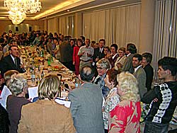 После поздравлений сцена вновь оказалась в распоряжении певца и аккомпанировавшего ему оркестра ансамбля «Асъя кыа». Публика не скупилась на аплодисменты, а сидевшая в первом ряду поэтесса Надежда Мирошниченко временами вскакивала и кричала: «Браво!». Г-н Моисеенко в долгу перед г-жой Мирошниченко не оставался – то дарил ей загодя прикрепленный к пюпитру цветочек, то называл «сестрой Есенина». Когда по окончании его выступления на сцену вновь поднялась г-жа Жиделева, поэтесса, выражая юбилярше благодарность за «сохраненный талант России», по-свойски назвала ее Валькой и поразила женскую половину зала сообщением о том, что у жены певца нет соперниц. Отработав концерт, Алексей Моисеенко зачитал список гостей, которым предстояло выйти на сцену с поздравлениями. «Тут не по рангу, а по приближенности к телу. В смысле, по работе», – пояснил г-н Моисеенко. Выходили ректор СГУ Василий Задорожный, заместитель Главы РК Вера Скоробогатова, руководитель Коми регионального отделения партии «Единая Россия» Анатолий Каракчиев. Компанию им должен был составить председатель Госсовета РК Иван Кулаков. Но по направлению к сцене двинулся его заместитель Алексей Безносиков. Г-н Моисеенко посетовал: «Вот так и на производстве – кирпич и цемент привезли, а рабочих нет». Алексея Безносикова выпад не смутил, и он преподнес юбилярше букет и пакет с «весьма полезной вещью». «Приближенные к телу» Валентины Жиделевой предшественники тоже не особо смущались, позволяя себе весьма фривольные шутки. «Непросто ей с Алексеем Васильевичем-то жить – с ним минут пятнадцать поговоришь и за мыслью перестаешь следить», – посочувствовал своей подчиненной по университетской деятельности г-н Задорожный. «Как она с таким мужем живет так долго?» – вторил ему партийный начальник юбилярши г-н Каракчиев. Когда список поздравляющих VIPов иссяк, Алексей Моисеенко обратился к залу с вопросом: «Кто еще невесту не целовал?» «Целовать невесту» выстроилась очередь. Кто целоваться не хотел, занимал места возле большого стола в фойе филармонии. Таковых оказалось человек двести как минимум. Украшением стола служила водка «Юбилейная» с изображением юбилярши. Примерно через полчаса после первой рюмки г-н Моисеенко, совершая обход слегка опустевшего стола, занервничал, обнаружив пустые бутылки с портретом супруги. «Я же покупал другую водку, должна быть и обычная», – как всякий распорядитель торжества волновался народный артист по поводу нехватки спиртного. Волновался, как выяснилось, зря. Некоторые сообразительные гости уже покупали водку в буфете филармонии. В том числе лидер республиканских «едроссов» г-н Каракчиев. Но Алексея Моисеенко это не успокоило. Завладев микрофоном, он обратился к гостям: «Друзья мои, вы меня извините, но пропала водка. Я покупал, должна быть еще». Он не ошибался – водку нашли. Юбилейное застолье продолжилось с новой силой. Алексей Лазарев |