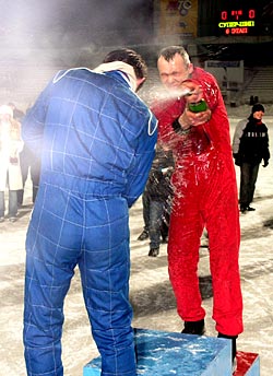 Владимир Пушкарев взял Кубок главы РК,как и ожидалось![]() У Владимира Пушкарева творческий взгляд на автогонки. Сыктывкарский автогонщик Владимир Пушкарев вполне предсказуемо стал обладателем Кубка главы РК по трековым автогонкам «Супершип», которые проводит спортклуб «Снежный барс». В прошлую субботу, 11 марта, на Республиканском стадионе он выиграл финальный, 6-й этап серии. Впрочем, как и все предыдущие. В 20 заездах финального этапа (плюс один суперзаезд) участвовали 16 машин. Из них одна – под № 9 – заслуженно удостаивалась рева зрителей, почти заполнивших центральную трибуну стадиона – Владимир Пушкарев в своей обычной манере не просто ехал наперегонки, но, несмотря на ограниченность маневра в кольцевых гонках, ехал творчески. Такое отношение к делу в итоге привело его на высшую ступеньку пьедестала, где гонщику вручили кубок и 15 тысяч призовых рублей от организаторов состязания. Висевшие в течение сезона у г-на Пушкарева на хвосте сыктывкарец Михаил Шустиков и кировчанин Александр Преснецов заняли, соответственно, второе и третье места, получив сообразно своим позициям 10 и 5 тыс. руб. Оставшиеся 30 тысяч призового фонда были распределены среди других участников автогонок. Финал «Супершипа» оказался «хлебным» не только для гонщиков. В перерывах между заездами для зрителей проводились различные конкурсы. Те, кому повезло отличиться, ушли со стадиона со страховым полисом на 100 тыс. руб., телевизорами стоимостью от $800 и менее, музыкальным центром и другими призами. Ожидалось, что финальный этап своего кубка посетит глава РК Владимир Торлопов и поучаствует в награждении призеров, однако он по каким-то причинам не приехал. Андрей Влизков