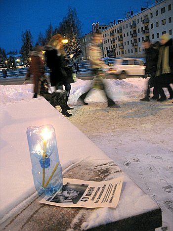 Активисты двух «Мемориалов» помянули Анну ПолитковскуюЭто понравилось не всем![]() В среду, 15 ноября, демократическая общественность отметила сороковой день после трагической гибели корреспондента «Новой газеты» Анны Политковской. Помянуть убитую журналистку жителей Сыктывкара и Ухты призвали активисты Коми правозащитной комиссии (КПК) «Мемориал» и Ухто-Печорской общественной организации «Мемориал». Данная инициатива не понравилась заведующему кафедрой философии Ухтинского государственного технического университета (УГТУ) Евгению Вологину, который назвал акцию правозащитников «пляской на гробу». Напомним, Анна Политковская была убита в Москве в подъезде многоквартирного дома, где она проживала, вечером 7 октября 2006 года, в день рождения президента РФ Владимира Путина. Погибшая журналистка получила международную известность благодаря своим публикациям о нарушениях прав человека в России и, в особенности, в Чечне. Соболезнования родственникам погибшей выразили главы многих государств, в частности, президент Франции Жак Ширак, федеральный канцлер ФРГ Ангела Меркель, президент США Джордж Буш (аналогичный знак со стороны г-на Путина так и не последовал). Движущей силой акции «40 дней без Ани» стали активисты двух «Мемориалов» и студенты Сыктывкарского государственного университета, Сыктывкарского лесного института и УГТУ. В Сыктывкаре молодые люди пришли к памятнику солдатам, погибшим в Афганистане и в ходе других локальных конфликтов. Здесь они зажгли свечу в лампаде, сделанной из пластиковой бутылки, и на протяжении двадцати минут раздавали прохожим листовки с призывом помянуть журналистку, «которую боялись власти и любили простые люди». В Ухте аналогичные листовки были розданы участникам ток-шоу «К вам подошел милиционер», организованном в УГТУ в рамках проекта Ухто-Печорского «Мемориала» по обучению молодежи навыкам правового взаимодействия с представителями органов внутренних дел. Данный факт не остался без внимания преподавателей вуза, которые пришли на мероприятие, чтобы, как следовало из их поведения, защитить милицию от наветов со стороны диссидентов, правозащитников и журналистов. Об убийствах журналистов первым заговорил старший преподаватель кафедры философии, политологии и социологии УГТУ Дмитрий Безгодов. Обратив внимание на поминальную листовку, он посетовал, что в России отмечается день памяти погибших журналистов, но нет дня поминовения погибших милиционеров. Под занавес мероприятия по мемориальной акции правозащитников проехался и заведующий указанной кафедрой Евгений Вологин. Он заявил, что раздача листовок – это «пляски на гробу журналистки», которую, по его мнению, «убили свои же». Эрнест Мезак |