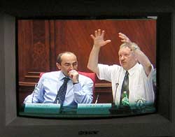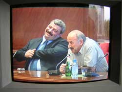Во вторник во второй половине дня высокопоставленные гости, насладившись прелестями местной природы, вернулись в Сыктывкар. На этом неофициальная часть визита завершилась. Но не завершился сам визит. Г-н Кочарян (уже без сына) вместе с г-ном Багдасаровым провели встречу с наиболее влиятельными армянами РК. На встречу, которая проходила вечером 6 июля в Желтом доме, пригласили президента Торгово-промышленной палаты РК Саркиса Манасарянца, директора Коми филиала Военно-мемориальной компании Ашота Айрапетова, генерального директора ООО «Дали-вояж» Мнацакана Никогосяна, владельца сети сыктывкарских ресторанов Николая Гарибяна и других (всего 15 человек). Разговор велся на русском языке, на котором г-н Кочарян говорит почти без акцента. Единственное слово, приведшее президента в замешательство, – «казначейство». С переводом вызвался помочь г-н Манасарянц (по его словам, он учился с Президентом Армении в одной школе № 3 города Степанакерта с разницей в два года). Часовая беседа была посвящена обмену любезностями, вручению презентов (среди которых выделялась карта Республики Коми, выложенная из поделочных камней и закрепленная в стекле) и прочим формальностям. Затрагивались и проблемы туризма (в том числе – на территории Коми). После встречи с президентом вдохновленные армяне удалились отмечать событие в ресторан «Гурман», где обсудили вопросы создания диаспоры, а также строительства армянской церкви в Сыктывкаре. Г-н Кочарян еще на какое-то время задержался в Желтом доме, после чего отправился почивать в Лемью. Наутро 7 июля самолет авиакомпании «Армавиа» взял курс на Ереван… Деловая версия Неожиданный визит Роберта Кочаряна в Коми, да еще к тому же накануне праздничного для всех армян Дня Конституции страны, вызвал удивление в Армении. Ереванский политолог и журналист Агаси Енокян, с которым связался по телефону корреспондент «ЗЖ», сказал следующее: «Этот визит вызвал у нас недоумение. В принципе, мы не поняли, зачем нужно было ехать в РК… Есть версия, что он хочет у вас в частном порядке приобрести какую-то собственность». Несколько другой версии придерживается еженедельная армянская газета «Иравунк» («Право»). В номере, вышедшем в свет 9 июля, со ссылкой на источники, близкие к аппарату Президента Армении, сообщается, что речь может идти об эксплуатации природных ресурсов в Коми, о начале какого-то бизнеса. Наконец, на сайте информагентства PanARMENIAN 7 июля появилась информация о визите президента: «Как заявил глава Армении, по итогам визита выработан ряд интересных предложений по взаимному сотрудничеству, которые помогут дальше развиваться и Коми, и Армении…» Самое интересное заключается в том, что Глава РК Владимир Торлопов не приглашал Роберта Кочаряна в Коми. «Никаких переговоров не было, – сообщил глава корреспонденту «ЗЖ». – У него был частный визит, и я строго соблюдал регламент по посещению первых лиц государства в субъекты РФ». – А зачем он вообще приезжал к нам? – Я этого не могу сказать пока… – Решение о его приезде было принято в Москве? – В общем, было дано специальное распоряжение Президента России на пребывание в Коми Президента Армении с частным визитом. Насколько я знаю, такие вопросы решаются между двумя лицами… – Вместе с ним прилетал г-н Багдасаров, армянский олигарх… – Да, это вы правы! Прилетавший вм